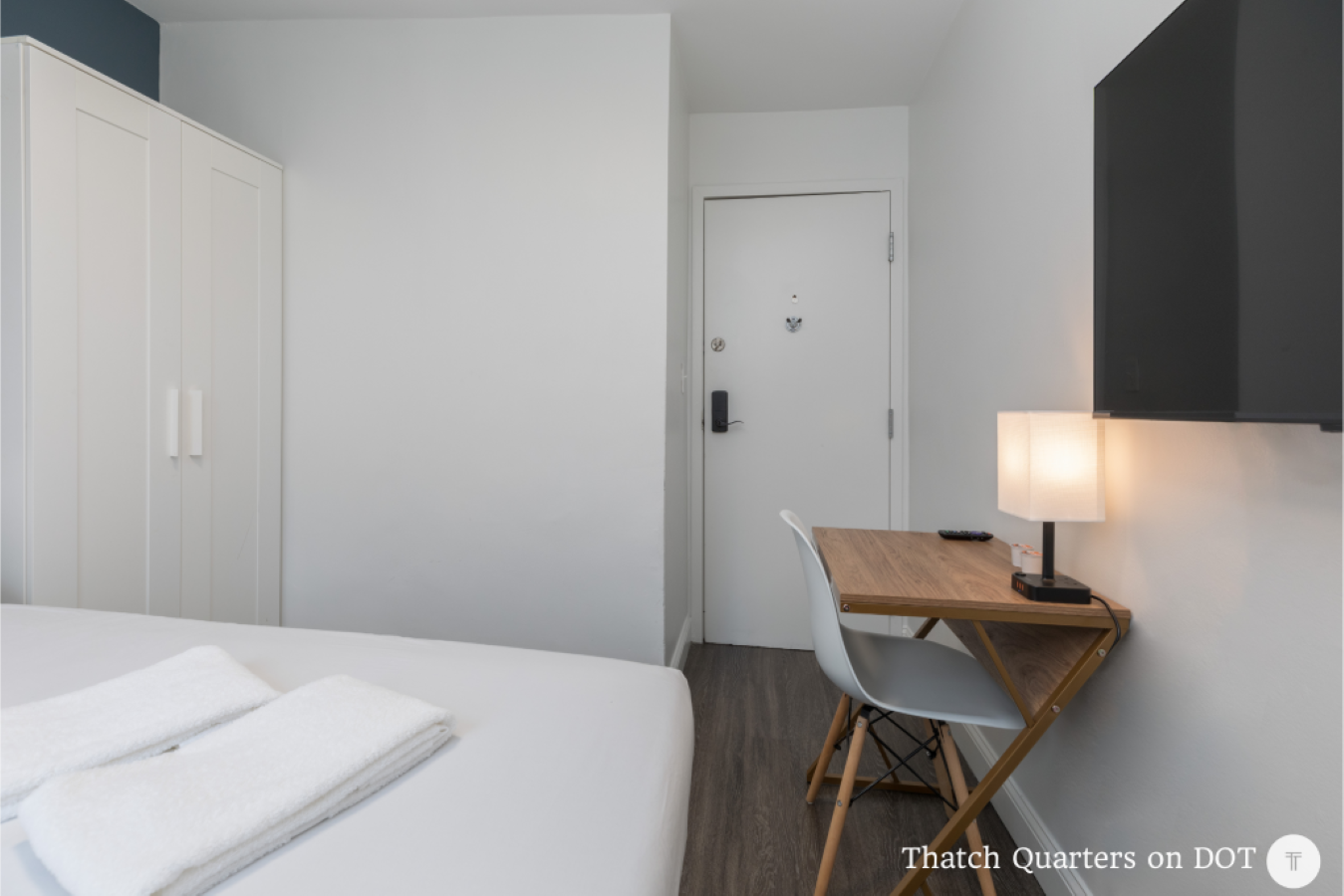 Quarters on DOT™ was our second Quarters location, behind Broadway. The dimensions of the building, its three natural light exposures, its central core and its location made it a prime candidate for the Quarters. Being a budget-friendly option in the city, the design of the Quarters concept requires density that is hard to achieve in many buildings because of access to natural light or dimensional challenges. In addition, the location of Quarters on DOT near the BCEC and the services and entertainment around it also made it the perfect candidate. DOT has been owned and managed by Thatch since 2016.